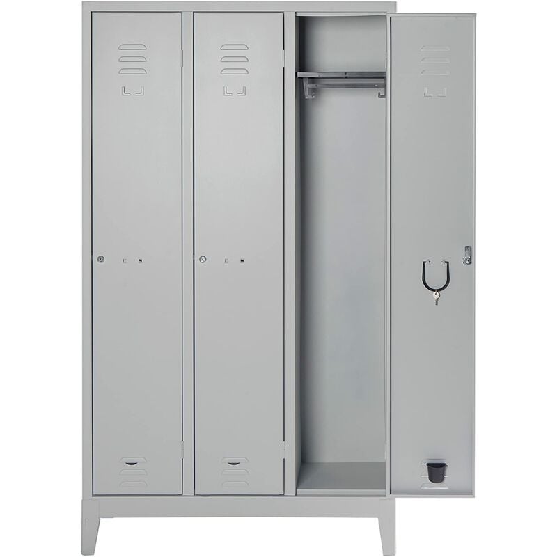 Armadio in metalloa 3 porte modellospogliatoio Struttura portante in lamiera d'acciaio profilata.Costruito in versioni da 1-2-3 porte con antine munite di asole per areazione.Dotazione interna: pianetto e portaombrelli.