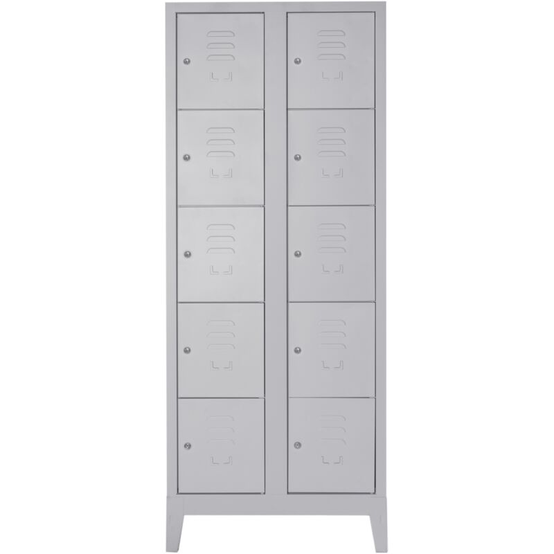 Descrizione del Prodotto: Armadio porta borse in metallo a 10 posti con serratura singola indipendente. Ogni vano ha la propria serratura Struttura interamente in metallo verniciata a polvere epossidrica. Lo spessore della lamiera e di 0,7 decimi,il colore e grigio ral.7032 A richiesta la serratura può essere modificata con chiusura lucchettabile. Usato nelle palestre,supermarket,locali,bar,ecc. Le misure sono Altezza 180 cm Larghezza 69 cm Profondità 40 cm