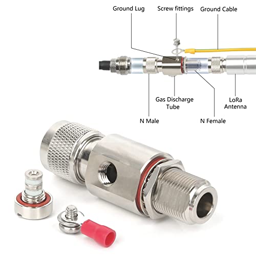 Affidabile potenza a banda larga (DC 0 - 6 GHz) con conduttore coassiale, protegge le antenne da 868 MHz, miner elio, modem 3G, 4G, 5G, LTE, router, booster, ripetitore e punti di accesso Wi-Fi da 2,4 GHz e altri sistemi di comunicazione di tipo N tensione coassiale per esterni, protezione contro i fulmini Pericolo