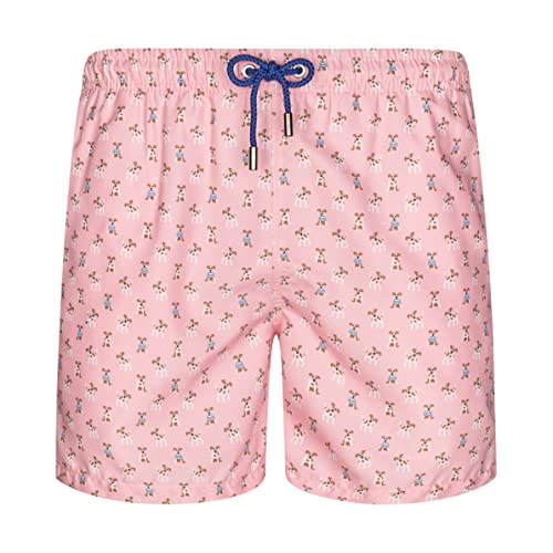Blue coast yachting - Costume da bagno uomo con stampa, asciugatura rapida, Cagnolino rosa, XL