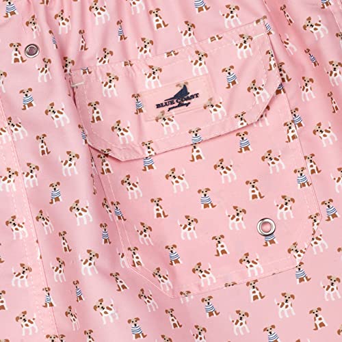 Blue coast yachting - Costume da bagno uomo con stampa, asciugatura rapida, Cagnolino rosa, L