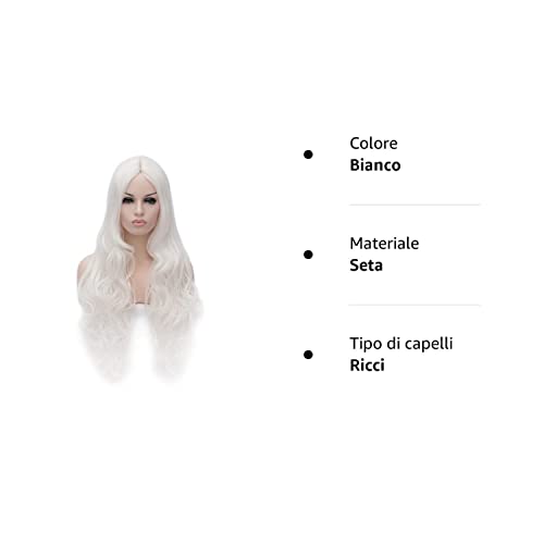 CoastaCloud LOLITA 30" Parrucca Da Donna Capelli Lunghi Mossi Ricci Per Travestimento Cosplay Bianco