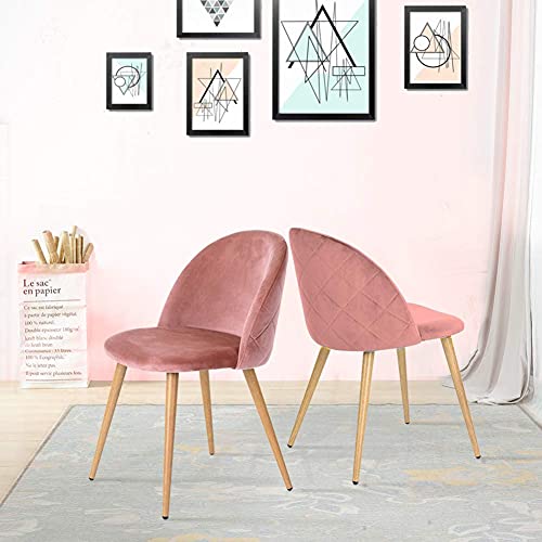 Coavas Sedie di Sala d'attesa Sedie da Pranzo Set 2 Pezzi Cuscino Morbido in Velluto Sedile e Schienale Gambe in Metallo con venatura del Legno per Sala da Pranzo e Soggiorno, Rosa