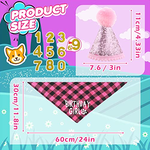 【Dimensioni degli accessori di compleanno per cani】 La dimensione della bandana di compleanno in stile a quadri è di 60 x 40 x 40 cm / 24 x 16 x 16 pollici ed è adatta per una circonferenza del collo inferiore a 22 pollici. L'altezza del cappello glitterato è di 7,6 cm e ogni numero misura è di 3,6 cm.