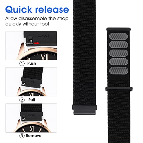 Cobee Cinturino in nylon, cinturino di ricambio regolabile, morbido e traspirante, per smartwatch uomo e donna (22 mm)