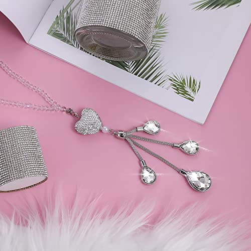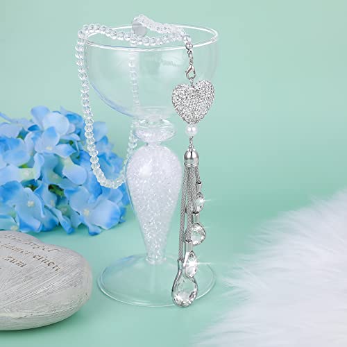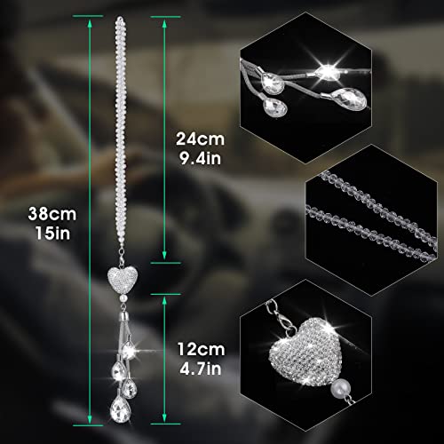 Cobee Ciondolo a forma di cuore per auto con strass,per specchietto retrovisore dell'auto decorazione per auto decorazione fortunata per interni dell'auto da appendere al ciondolo da donna (bianco)