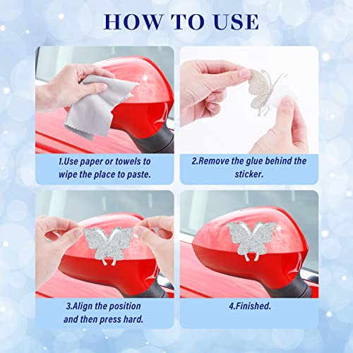 【Dimensioni della decalcomania dell'auto Bling】 Le dimensioni della decalcomania dell'auto con farfalla di strass sono 7,2 x 6,5 cm/2,83 x 2,55 pollici, adatte per la maggior parte delle auto. C'è un adesivo facile da staccare sul retro dell'adesivo per auto in cristallo;