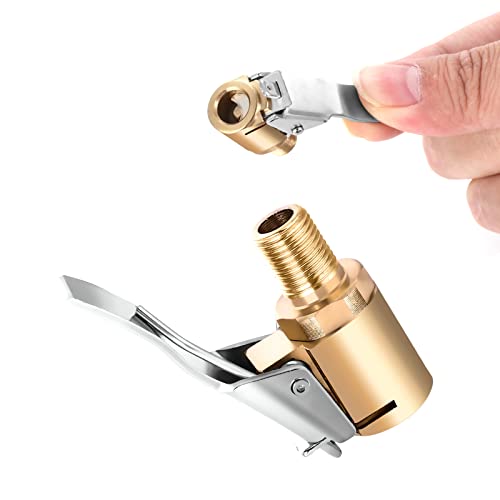 Cobee Mandrino Pneumatico con Adattatore a Clip, 2 Pezzi Air Chuck Tire Gonfiatore Compressore Pompa Connect, Heavy Duty Ottone Bloccaggio Pneumatico Gonfiatore Aria Mandrini Collegamento