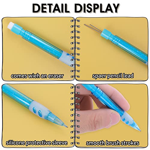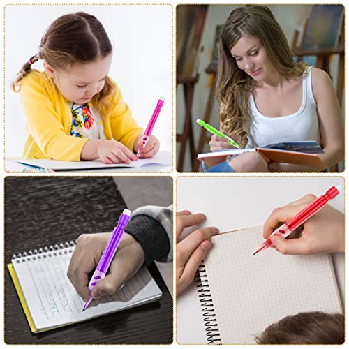 Matite meccaniche di colori assortiti: la nostra confezione include 12 mini matite automatiche in 5 diversi colori (rosso, verde, blu, rosa, viola) con gomme e ogni matita contiene due ricariche. Con una gomma sulla parte superiore, comoda per cancellare i segni di errore;