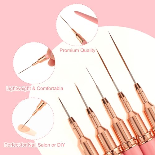 Nylon pratico: i nostri pennarelli da disegno sono realizzati in nylon resistente di alta qualità, adatti per smalto, colori acrilici e gel per unghie. I manicotti per tubi dorati sono a doppio bloccaggio per evitare il distacco e le maniglie in metallo hanno uno spessore adeguato per un comodo controllo. Questo strumento per unghie a strisce offre la qualità che non si ottiene con un pennello standard.