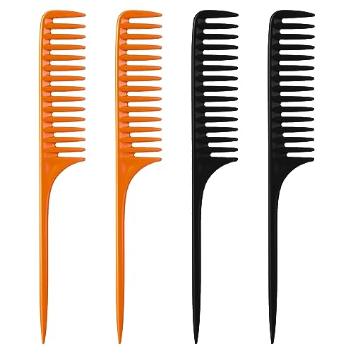 Cobee Pettine a denti larghi a coda di topo, 4 pezzi, pettine per capelli ricci a coda lunga, pettine districante antistatico, pettine da doccia per donne e uomini, capelli bagnati o asciutti
