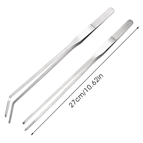 Set completo di pinzette: entrambe le pinzette curve e dritte sono lunghe 27 cm e possono essere utilizzate in una vasta gamma di applicazioni. Sono ideali per piantare, pulire piante morte e in eccesso, posizionare ornamenti e nutrire singoli pesci e animali da terrario.