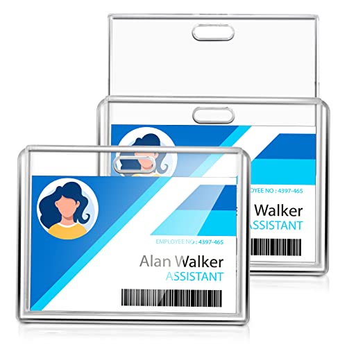 Cobee 2 porta badge per carte di credito, 2 pezzi, resistente, porta badge in plastica rigida, per carte di credito, patenti di guida, pass per ufficio e scuola (orizzontale)