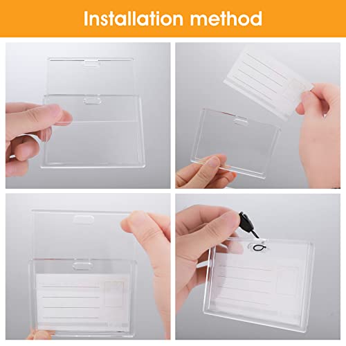 Materiale PS durevole: la pellicola protettiva per badge è realizzata in materiale rigido trasparente PS di alta qualità, che può impedire il badge d'identità con foto da graffi, piegature o rotture. L'elevata trasparenza può aiutarti a visualizzare chiaramente il contenuto della carta. La struttura sigillata mantiene l'interno pulito e previene gli schizzi d'acqua.
