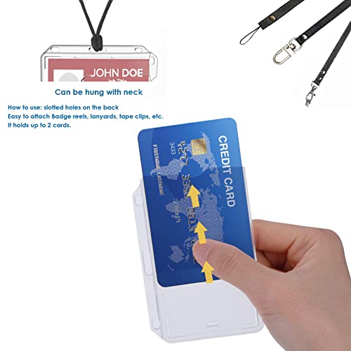 Cobee Porta badge identificativo, 2 pezzi, in plastica rigida, trasparente, porta carte di credito, con fessura per pollice