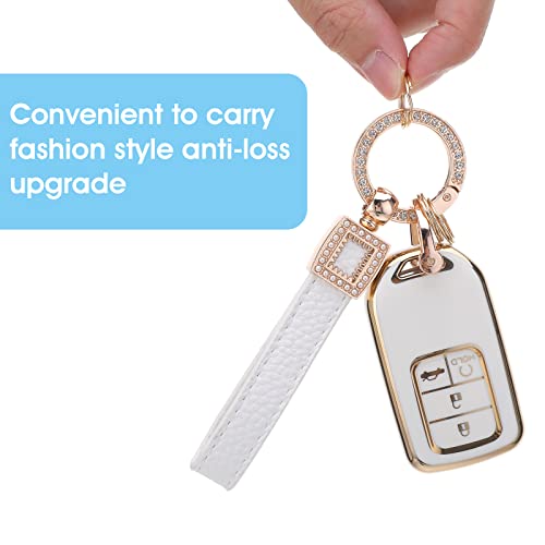 Cobee Portachiavi auto in pelle microfibra, portachiavi in pelle con strass scintillanti anti smarriti anello a D portachiavi accessori per uomini e donne, bianco