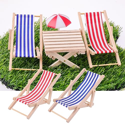 Cobee Mini sedia da spiaggia per casa delle bambole, 4 pezzi, scala 1:12, decorazione per casa delle bambole in miniatura, accessori per esterni, mini sedie a sdraio, ombrellone, tavolo per piante da