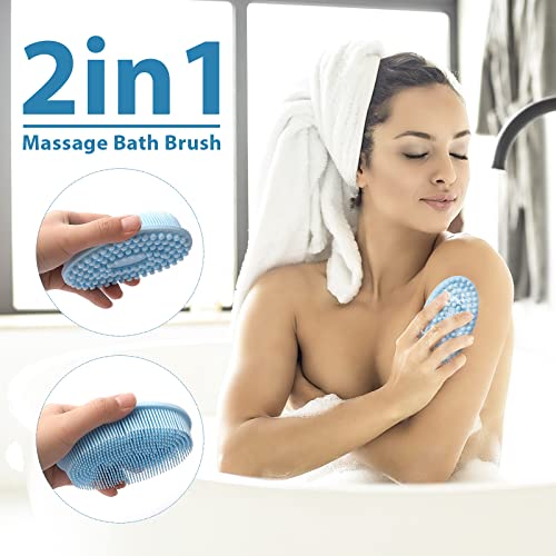 Cobee Spazzola da Bagno in Silicone, Scrubber Corpo Morbido Spazzola Doccia Esfoliante Spazzola Loofah Spazzola Scrub Corpo Spazzola Massaggio Testa 2 in 1 Spazzola Shampoo (Blu)