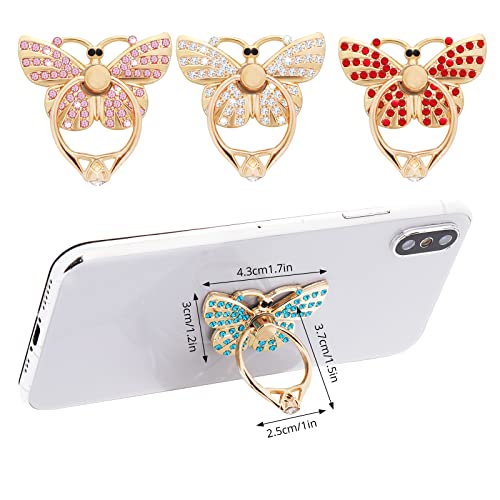 Cobee Supporti per Anelli per Cellulare, 4 Pezzi Porta Anelli per Telefono a Farfalla con Strass Cavalletto a Dito a Farfalla Glitter Impugnatura in Metallo con Passante per Manopola (4 Colori)