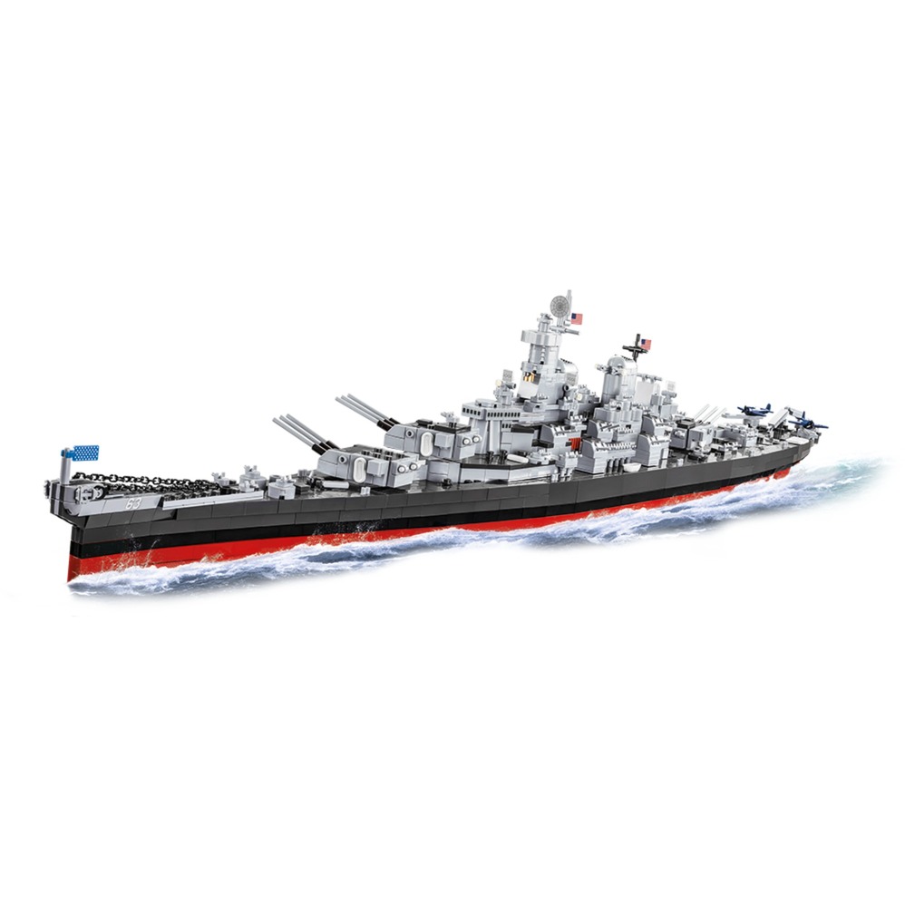 Questo modello COBI della corazzata statunitense Missouri è stato progettato in scala 1:300. Si compone di 2655 blocchi di costruzione e offre quindi molte ore di divertimento nella costruzione. Il modello riproduce fedelmente le proporzioni della nave storica, compresi molti dettagli. Il modello lungo 92 centimetri ha numerose parti mobili come torrette di artiglieria e canne di cannoni, eliche e un timone. Numerosi blocchi sono stampati in forma di alta qualità e resistente all''abrasione. Il set include un supporto costruibile con una pietra su cui è stampato il nome della nave.