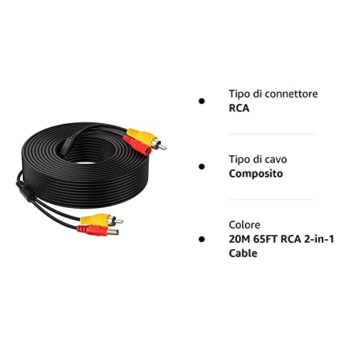 65FT / 20M lungo video Cavo di alimentazione 2-in-1. Facilità di installazione con due colori potere codificato e connettori RCA. 100% offerta schermato