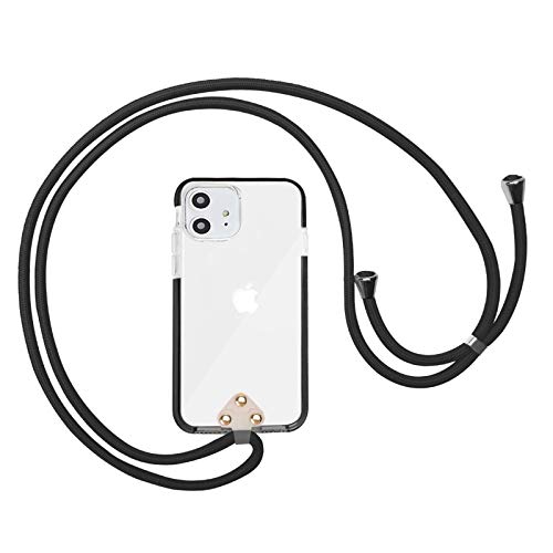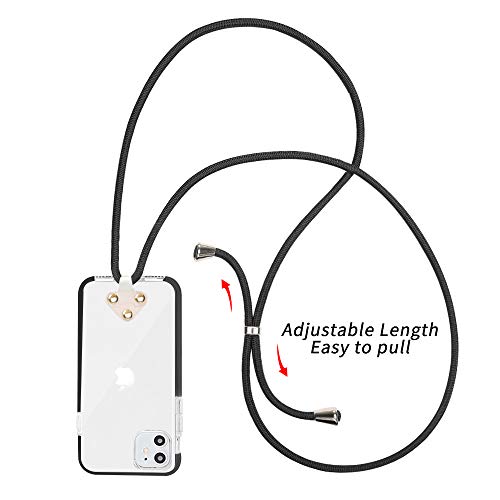 COCASES Custodia per Cordino per Cellulare, Compatibile con Custodia per iPhone 11, Tracolla Regolabile per Cordino per Telefono con Custodia Trasparente (6,1", Nera)