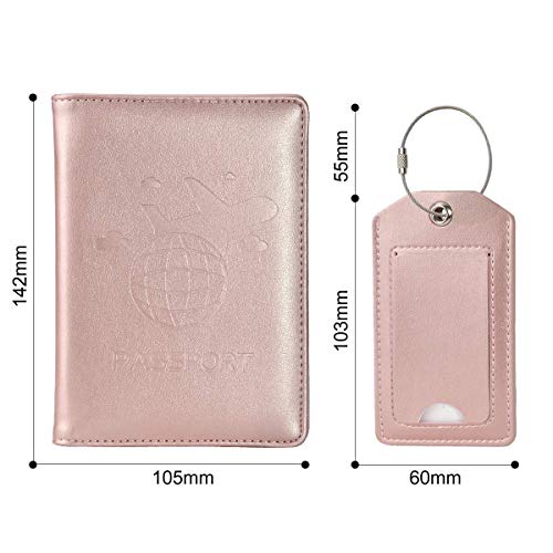 COCASES Porta Passaporto da Viaggio Portafoglio in PU Ecopelle Porta con Protezione RFID per carta di credito ID Documenti Custodia con 2 Bagagli Tag(Rose d'Oro)