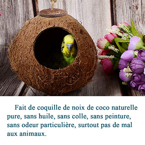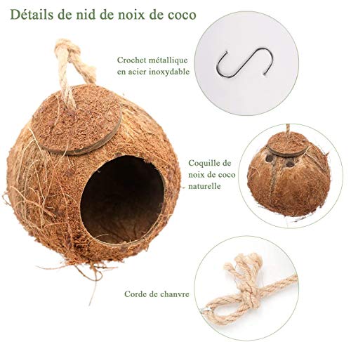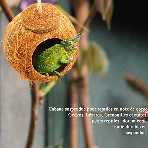 Nido di cocco per letto sospeso per criceto dorato, geco, parrocchetto e peonia, nido di cocco + gancio + vite artificiale