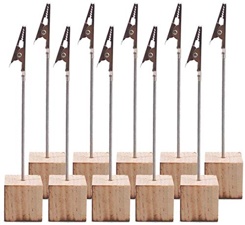 10 clip a coccodrillo per foto, supporto per cartoline, in metallo, supporto per appunti da scrivania, memo clip, supporto verticale per foto con base in pino.