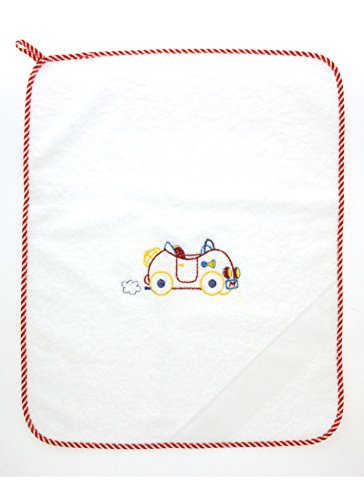 Coccole- Set asilo tela aida"macchina rossa" - 3 pezzi: 1 bavaglino, 1 asciugamano e 1 sacca - rosso - 3 mesi - 5 anni da ricamare con tela aida Scuola materna