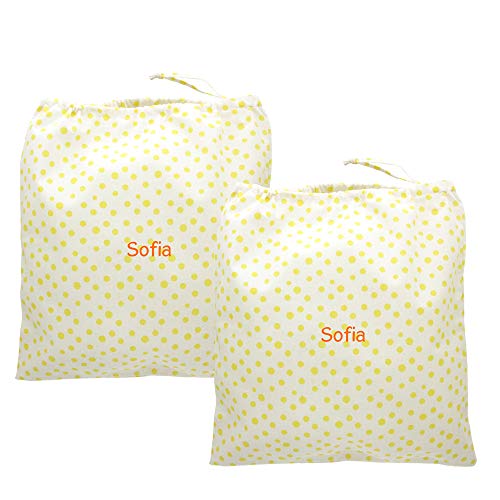 Coccole- Set asilo pappa con nome personalizzato (Sacche, Pois giallo)