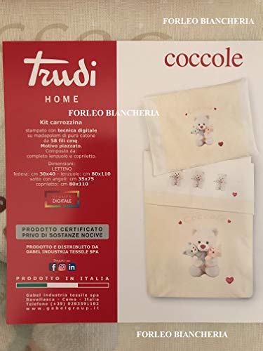 COCCOLE SET CARROZZINA 80x110 COPRILETTO COTONE + COMPLETO CULLA COLORE CANARINO TRUDI GABEL