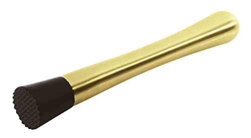 Set composto da: molla ghiaccio, misurino cocktail, pestaghiaccio, cucchiaio miscelatore, shaker, 3 tappi versatori. In colorazione gold lucido