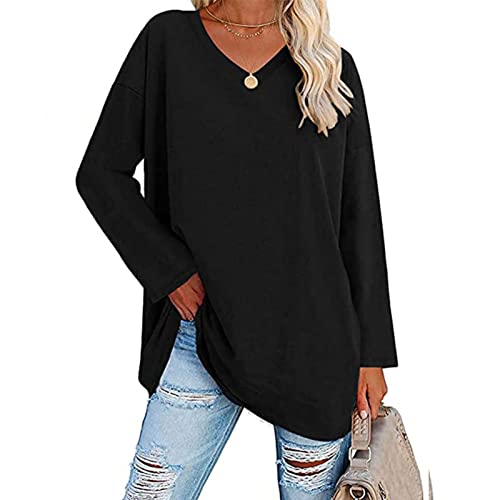 Cocoarm Maglietta da Donna con Scollo a V, Manica Lunga, Camicetta Ampia, Manica Lunga, Top Oversize(S-Nero)