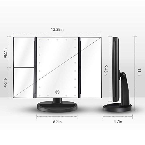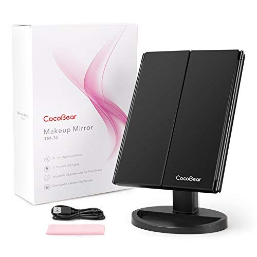 CocoBear Specchio illuminato per trucco con 3x / 2x ingrandimento, Touch Screen Specchio di trifold con 21 LED, 180°girevole, doppia alimentazione elettrica, Specchio Cosmetico da Tavolo