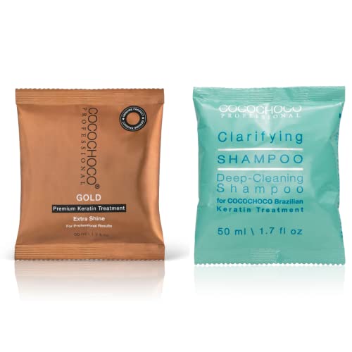 Cocochoco Gold - Kit per trattamento capelli alla cheratina brasiliana, 50 ml, trattamento e shampoo chiarificante da 50 ml