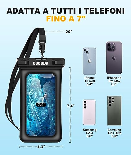 Cocoda [2 Pezzi Custodia Impermeabile Smartphone, IPX8 Custodia Subacquea Smartphone Dry Bag, Custodia Cellulare Impermeabile Compatibile con iPhone 13 Pro Max/12 Pro Max/11 Pro/XS/XR, Fino a 7,0"