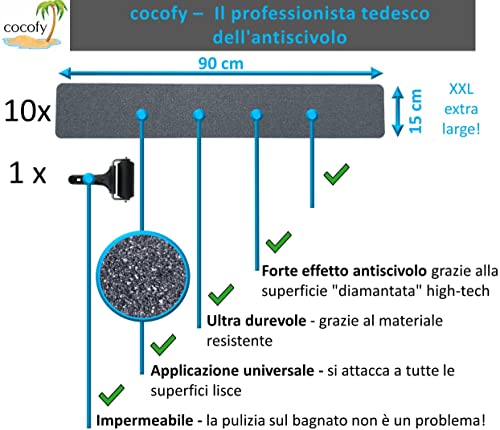 Cocofy Strisce Antiscivolo per Scale Esterne | 10 Strisce di Nastro Antiscivolo Grigie (90x15 cm) | Antiscivolo Scale con Speciale Superficie per Esterni| Strisce Antiscivolo con Rullo