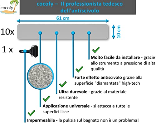 Cocofy Strisce Antiscivolo per Scale Esterne| 10 Strisce di Nastro Antiscivolo Semitrasparenti (61x10 cm) | Antiscivolo Scale con Speciale Superficie per Esterni| Strisce Antiscivolo con Rullo
