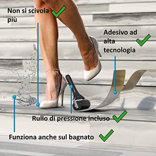 ✅ GRIP TAPE ULTRA FORTE: La pellicola adesiva altamente efficace sotto le strisce antiscivolo adesive garantisce una tenuta ottimale su un'ampia varietà di superfici, dalla pietra all'acciaio, e anche su scale in legno lisce o verniciate. Se necessario, possono essere rimosse senza lasciare residui.