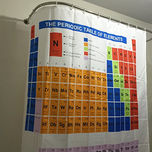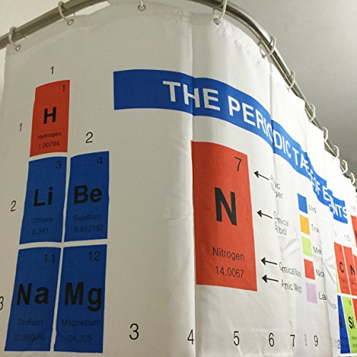 COCOOL Tenda della doccia antimuffa impermeabile, 12PCS Gancio di plastica a forma di C (compreso) - Occhielli in ottone, lavabile in lavatrice, Modello di stampa digitale in 3D, 100% Poliestere (La nuova tavola periodica, 180(W)×180(H) cm)