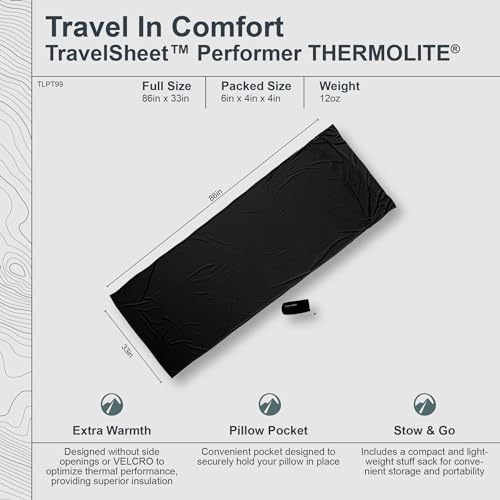 Cocoon - Sacco a pelo termico Travel Sheet, in tessuto Thermolite Performer, Adulti (unisex), volcano black, 220x85cm