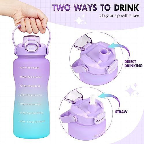CodiCile Borraccia da 2 litri con cannuccia e infusore per frutta, in Tritan, senza BPA, grande borraccia da 2 l, a prova di perdite, con indicazione del tempo, per sport, palestra, interni ed esterni