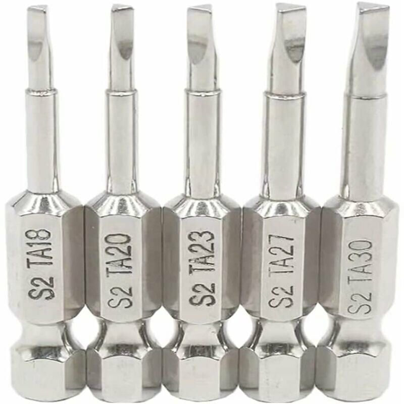 Realizzato in acciaio legato S2 ad alta resistenza, resistente all'usura e durevole. Dimensioni della testa triangolare: TAΔ18 (1,8 mm), TAΔ20 (2,0 mm), TAΔ23 (2,3 mm), TAΔ27 (2,7 mm), TAΔ30 (3,0 mm), Lunghezza: 50 mm (2 pollici). Adatto per l'installazione in avvitatori pneumatici, avvitatori elettrici, trapani a batteria, utilizzando il kit del vento. < li>Utensili elettrici ampiamente utilizzati, assemblaggio di avvitatori elettrici, industria elettronica, elettrodomestici, industria degli strumenti di precisione, industria del mobile, attrezzature per l'avvitamento. Specifiche: Materiale: acciaio S2. Colore: come mostra l'immagine. Totale lunghezza: 50 mm. Dimensioni del gambo esagonale: 6,35 mm (1/4). Cosa ottieni: < /p> 1 x 1,8 mm 1 punta per cacciavite 2,0 mm 1 punta per cacciavite 2,3 mm 1 punta per cacciavite 2, 7 mm 1 punta per cacciavite 3,0 mm Fornitura: 5 pezzi/set Colore del prodotto: argento Dimensioni del prodotto: 50 mm di lunghezza< /p> Nota: misurazione