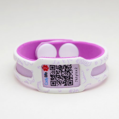 Codylife - Identificatore per bambini con codice QR e spazio per la scrittura dei dati, Bianco/viola, MINI (contorno 12,5 cm)