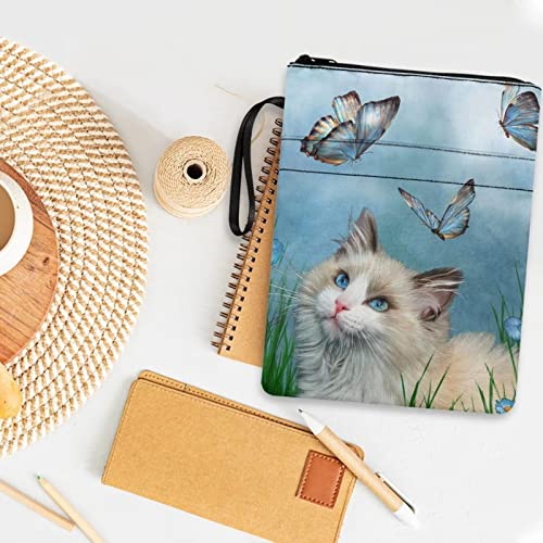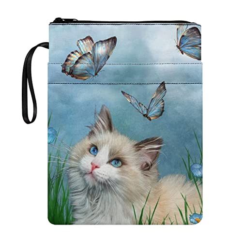 COEQINE Custodia per libro per gatti, con chiusura a cerniera, motivo a farfalla, con tasca frontale