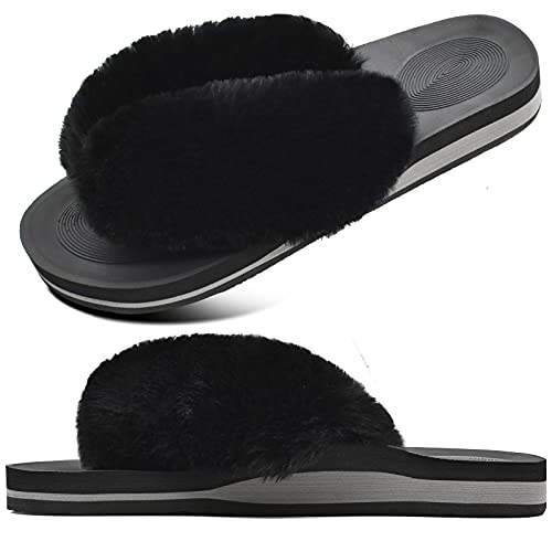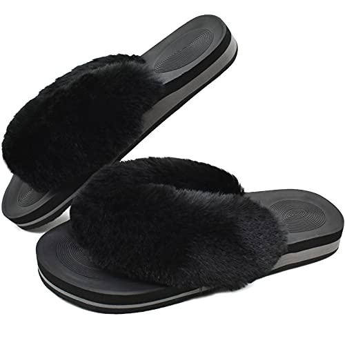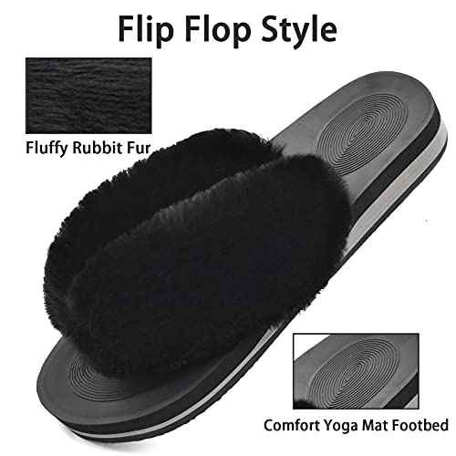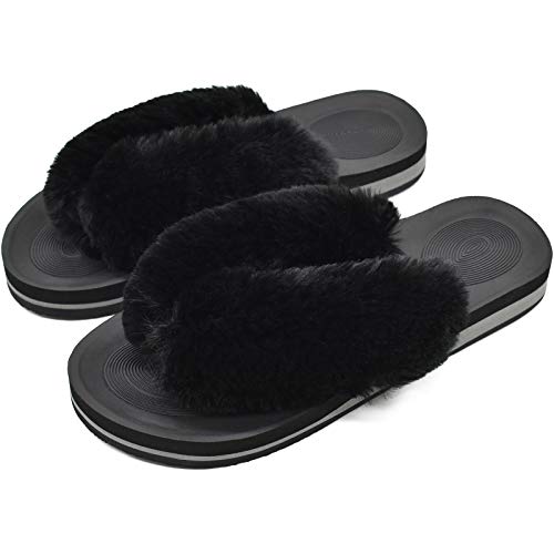 COFACE Nero Pantofole Donna Peluche Infradito Pelose Calde Molle Pelliccia Finta Flip Flop Moda antiscivolo Ciabatte Comode Scarpe da Casa Autunno/Inverno Taglia 39EU