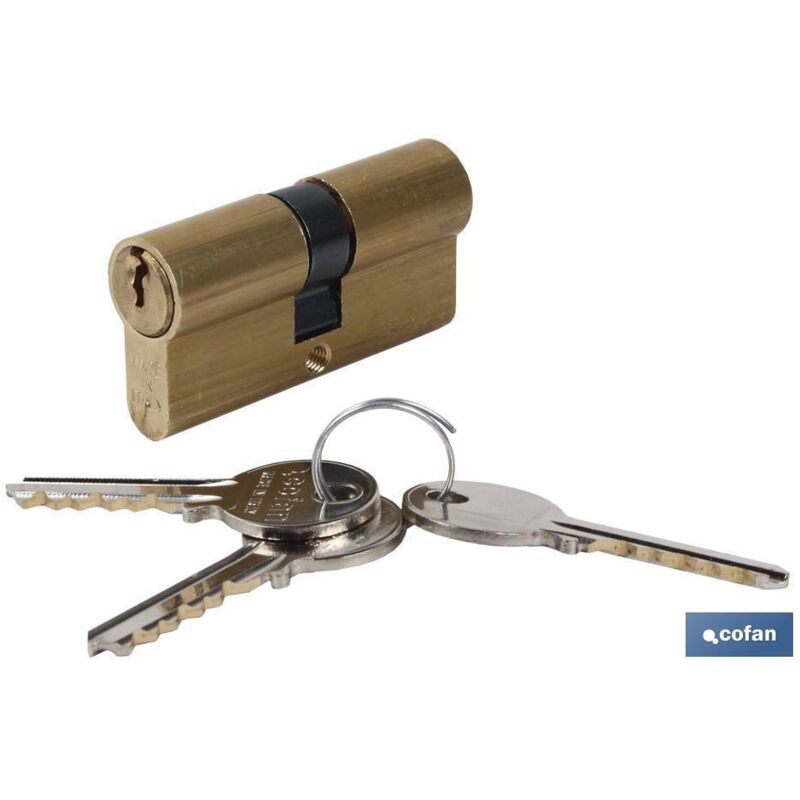 Cilindri europei con chiave uguale, colore ottone. Realizzato in acciaio e ottone. Sporgenza in acciaio autolubrificante. Molle in bronzo fosforoso. 5 chiodi in ottone. 3 chiavi. Camma lunga. Caratteristiche tecniche: Misure: 35 x 45 mm