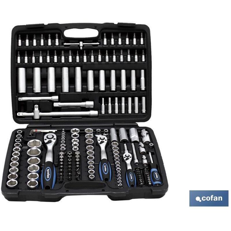 Set di cricchetti multiutensile 171 pezzi in custodia di plastica con chiusura speciale, inclusi cricchetti, prolunghe, accessori e bussole da 1/4, 3/8 e 1/2. Qualità professionale. Caratteristiche tecniche: Contenuto Bl: 171 pezzi
