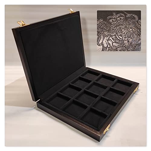Cofanetto astuccio in legno per monete con inciso lo Stemma reale del Regno Unito capsule quadrum